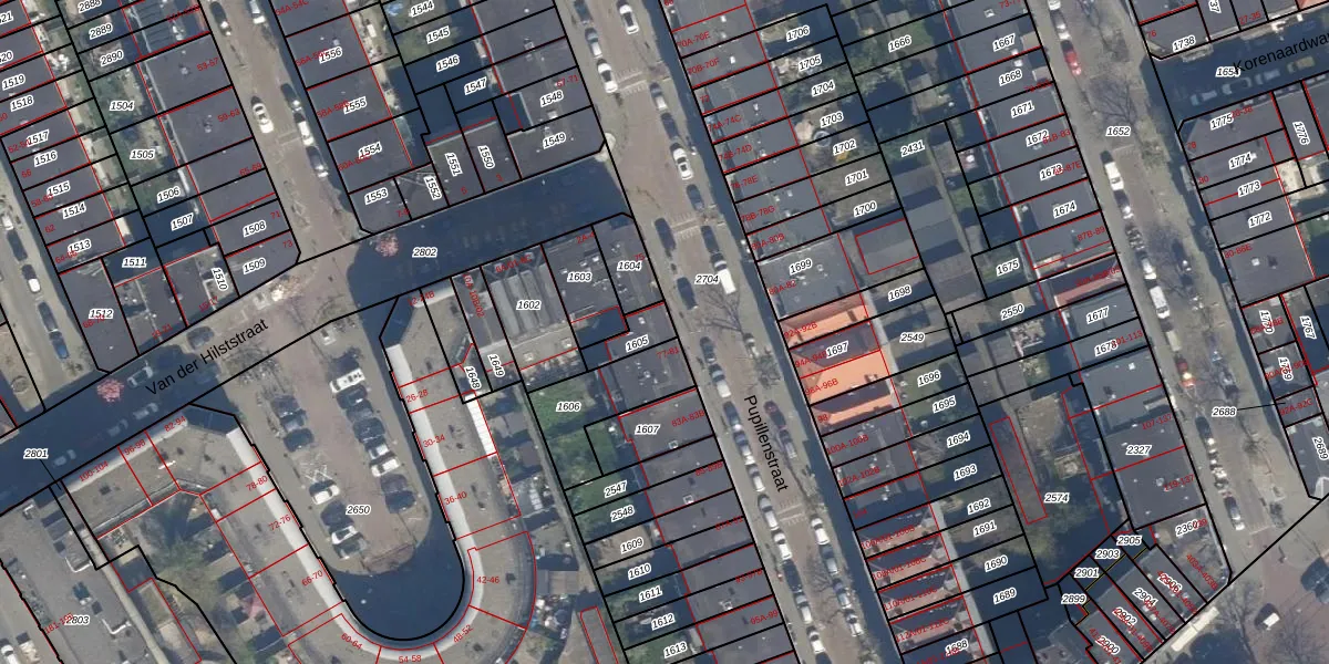 Het perceel waarop Pupillenstraat 79-C staat heeft een oppervlakte van 63 m². Dit is een klein perceel. De perceeloppervlakte wordt geregistreerd door het Kadaster. Gedetailleerde informatie over de maten van dit perceel kunt u vinden in het rapport Kadastrale kaart met maatvoering van Pupillenstraat 79-C.
