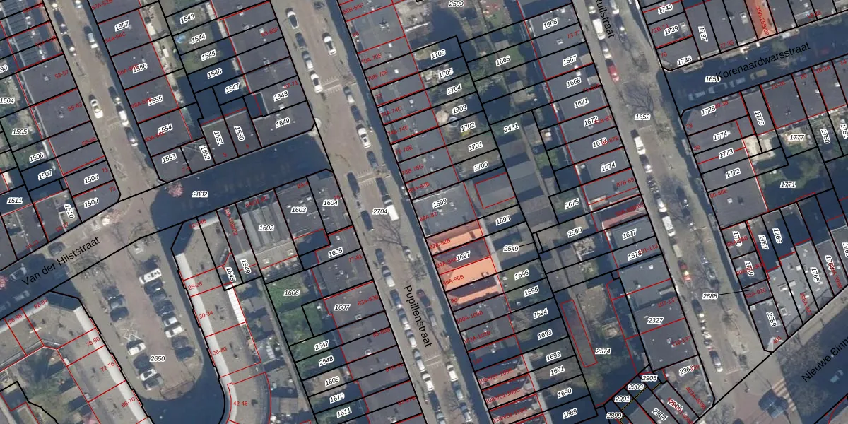 Pupillenstraat 80-A is gelegen op kadastraal perceel DHV00F1699. Deze kadastrale aanduiding is uniek en wordt gebruikt door het Kadaster om eigendomsrechten en andere zakelijke rechten vast te leggen. Het perceel maakt onderdeel uit van de kadastrale gemeente Delfshaven.