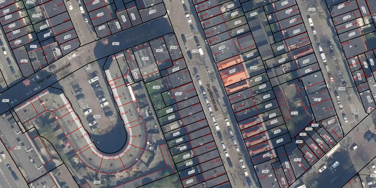 Pupillenstraat 83-A is gelegen op kadastraal perceel DHV00F1607. Deze kadastrale aanduiding is uniek en wordt gebruikt door het Kadaster om eigendomsrechten en andere zakelijke rechten vast te leggen. Het perceel maakt onderdeel uit van de kadastrale gemeente Delfshaven.
