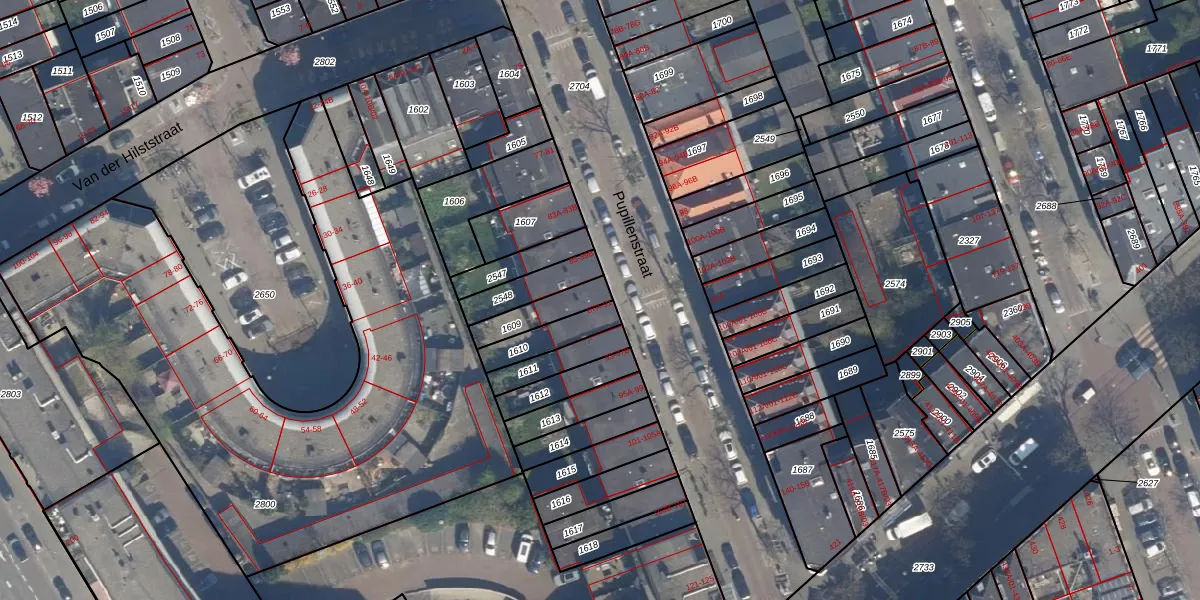 Pupillenstraat 89-A is gelegen op kadastraal perceel DHV00F1609. Deze kadastrale aanduiding is uniek en wordt gebruikt door het Kadaster om eigendomsrechten en andere zakelijke rechten vast te leggen. Het perceel maakt onderdeel uit van de kadastrale gemeente Delfshaven.