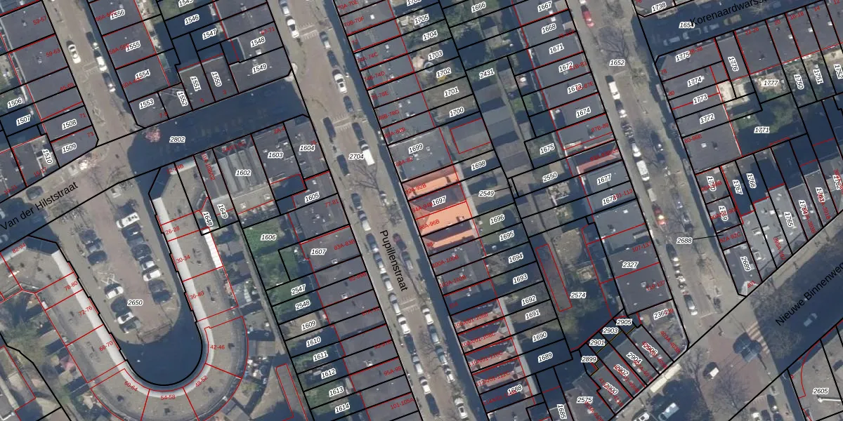 Pupillenstraat 94-B is gelegen op kadastraal perceel DHV00F1697. Deze kadastrale aanduiding is uniek en wordt gebruikt door het Kadaster om eigendomsrechten en andere zakelijke rechten vast te leggen. Het perceel maakt onderdeel uit van de kadastrale gemeente Delfshaven.