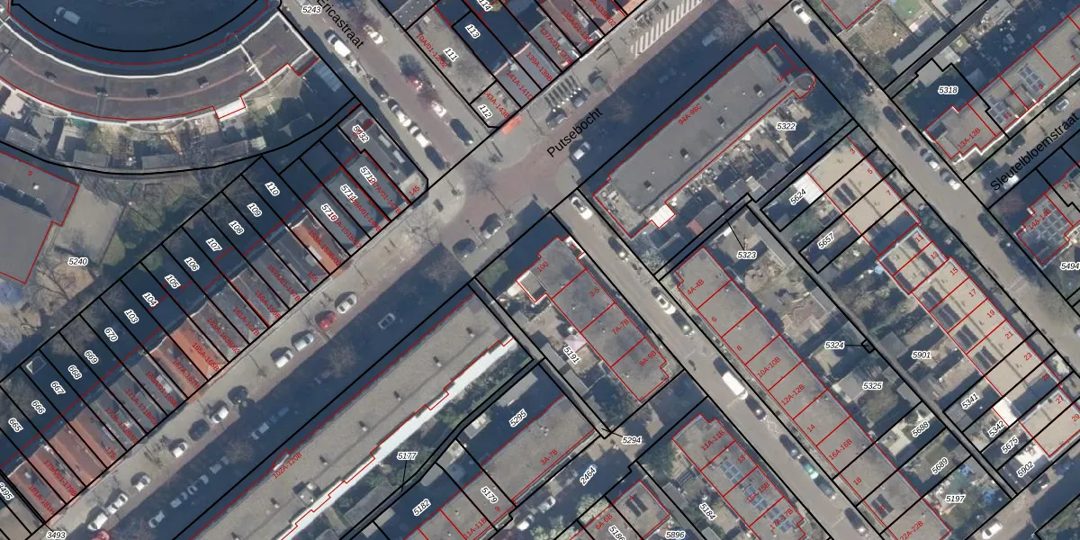 Putsebocht 100 is gelegen op kadastraal perceel CLS00G5191. Deze kadastrale aanduiding is uniek en wordt gebruikt door het Kadaster om eigendomsrechten en andere zakelijke rechten vast te leggen. Het perceel maakt onderdeel uit van de kadastrale gemeente Charlois.