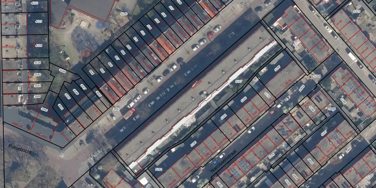 Putsebocht 116-A is gelegen op kadastraal perceel CLS00G5176. Deze kadastrale aanduiding is uniek en wordt gebruikt door het Kadaster om eigendomsrechten en andere zakelijke rechten vast te leggen. Het perceel maakt onderdeel uit van de kadastrale gemeente Charlois.