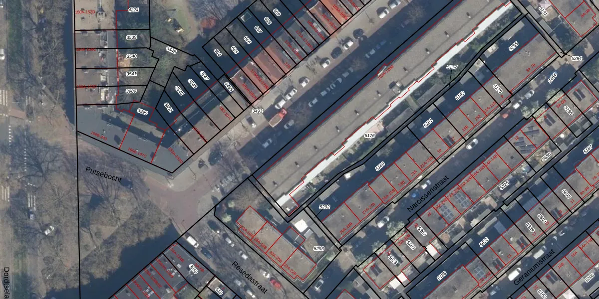 Putsebocht 120-A is gelegen op kadastraal perceel CLS00G5176. Deze kadastrale aanduiding is uniek en wordt gebruikt door het Kadaster om eigendomsrechten en andere zakelijke rechten vast te leggen. Het perceel maakt onderdeel uit van de kadastrale gemeente Charlois.