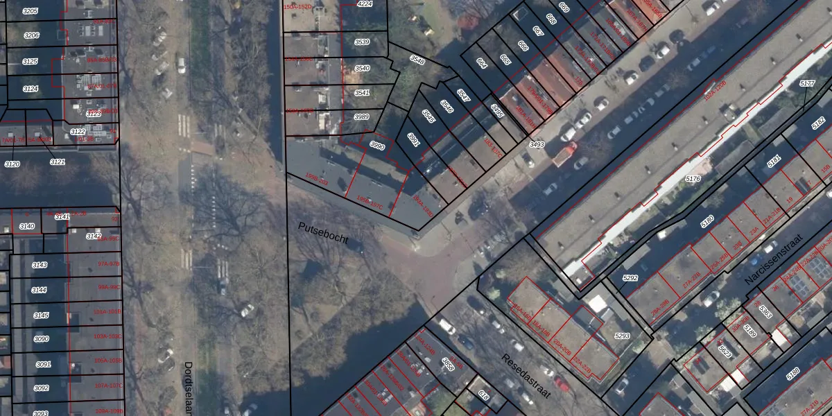 Putsebocht 193-A is gelegen op kadastraal perceel CLS00G3990. Deze kadastrale aanduiding is uniek en wordt gebruikt door het Kadaster om eigendomsrechten en andere zakelijke rechten vast te leggen. Het perceel maakt onderdeel uit van de kadastrale gemeente Charlois.
