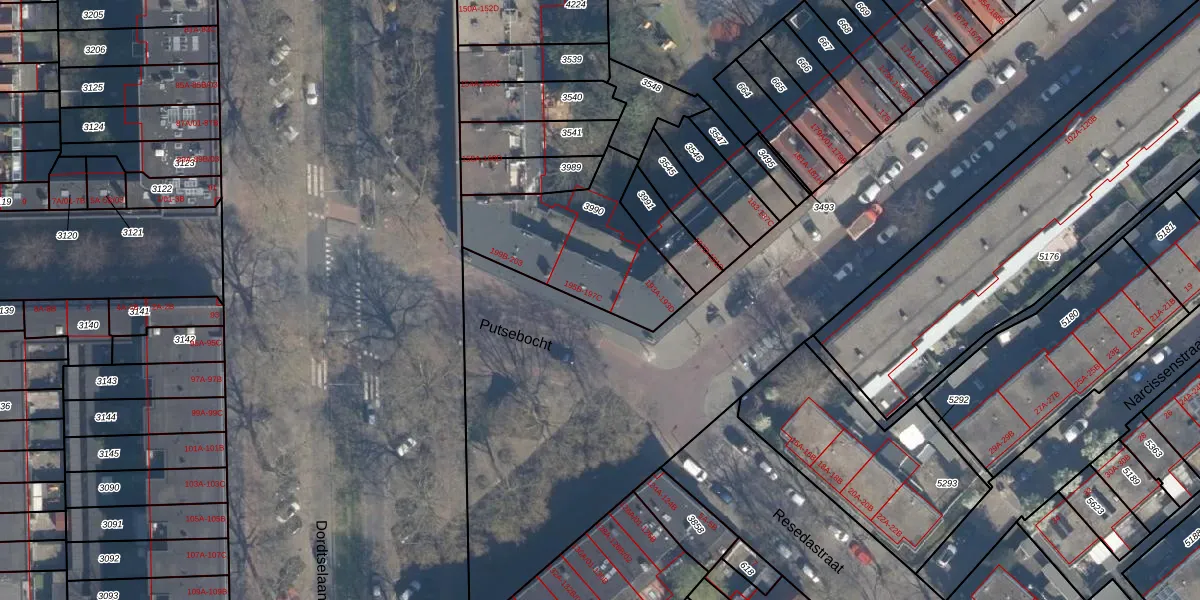 Putsebocht 195-D is gelegen op kadastraal perceel CLS00G3990. Deze kadastrale aanduiding is uniek en wordt gebruikt door het Kadaster om eigendomsrechten en andere zakelijke rechten vast te leggen. Het perceel maakt onderdeel uit van de kadastrale gemeente Charlois.