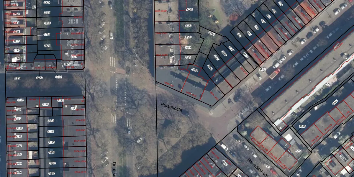 Putsebocht 199-B is gelegen op kadastraal perceel CLS00G3990. Deze kadastrale aanduiding is uniek en wordt gebruikt door het Kadaster om eigendomsrechten en andere zakelijke rechten vast te leggen. Het perceel maakt onderdeel uit van de kadastrale gemeente Charlois.