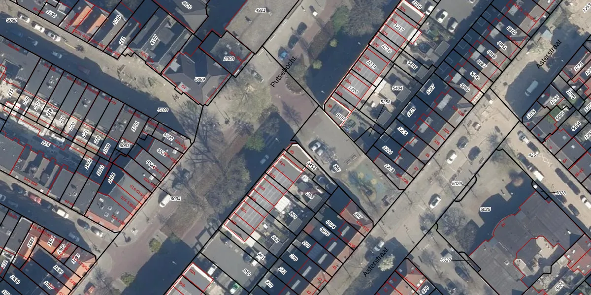 Gebruik de zoekbalk of klik op een perceel voor informatie over de adressen binnen dit perceel.