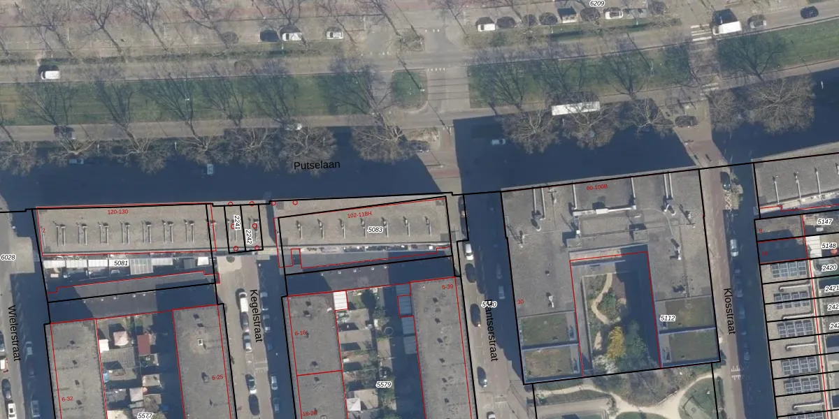 Putselaan 102 is gelegen op kadastraal perceel CLS00G5083. Deze kadastrale aanduiding is uniek en wordt gebruikt door het Kadaster om eigendomsrechten en andere zakelijke rechten vast te leggen. Het perceel maakt onderdeel uit van de kadastrale gemeente Charlois.