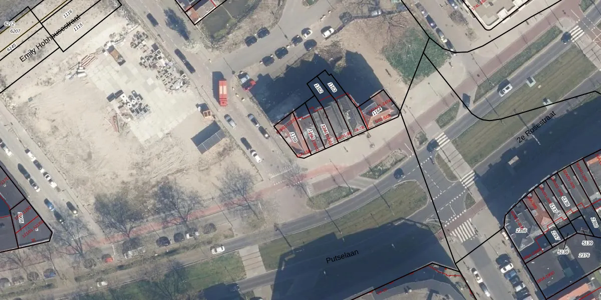 Het perceel waarop Putselaan 15-A staat heeft een oppervlakte van 91 m². Dit is een klein perceel. De perceeloppervlakte wordt geregistreerd door het Kadaster. Gedetailleerde informatie over de maten van dit perceel kunt u vinden in het rapport Kadastrale kaart met maatvoering van Putselaan 15-A.