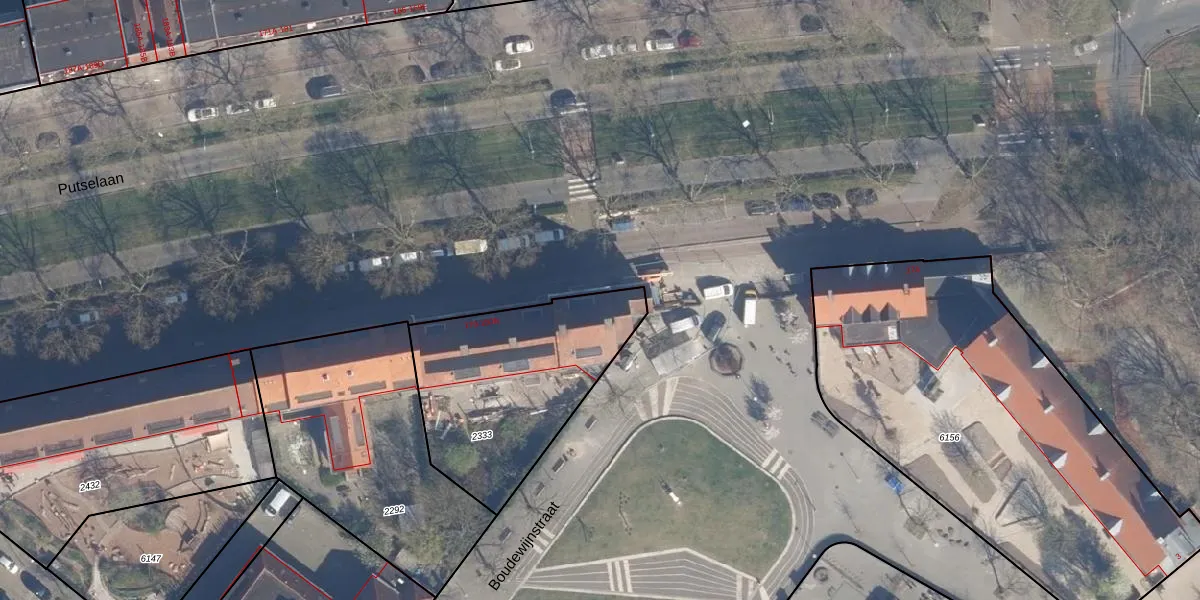 Gebruik de zoekbalk of klik op een perceel voor informatie over de adressen binnen dit perceel.