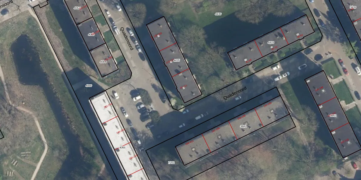 Het perceel waarop Quadenoord 111 staat heeft een oppervlakte van 514 m². Dit is een groot perceel. De perceeloppervlakte wordt geregistreerd door het Kadaster. Gedetailleerde informatie over de maten van dit perceel kunt u vinden in het rapport Kadastrale kaart met maatvoering van Quadenoord 111.
