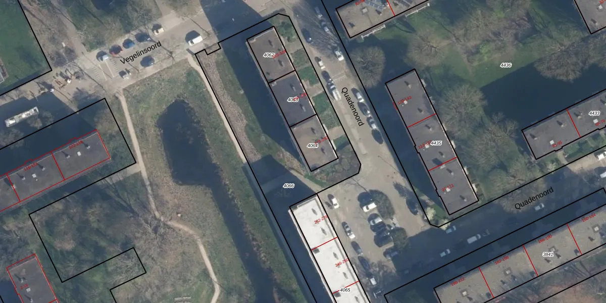 Quadenoord 284 is gelegen op kadastraal perceel ISM01B4064. Deze kadastrale aanduiding is uniek en wordt gebruikt door het Kadaster om eigendomsrechten en andere zakelijke rechten vast te leggen. Het perceel maakt onderdeel uit van de kadastrale gemeente IJsselmonde.