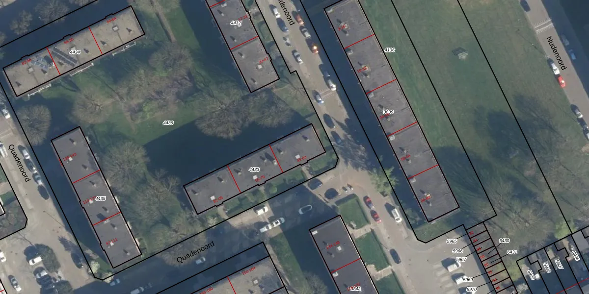 Het perceel waarop Quadenoord 51 staat heeft een oppervlakte van 514 m². Dit is een groot perceel. De perceeloppervlakte wordt geregistreerd door het Kadaster. Gedetailleerde informatie over de maten van dit perceel kunt u vinden in het rapport Kadastrale kaart met maatvoering van Quadenoord 51.