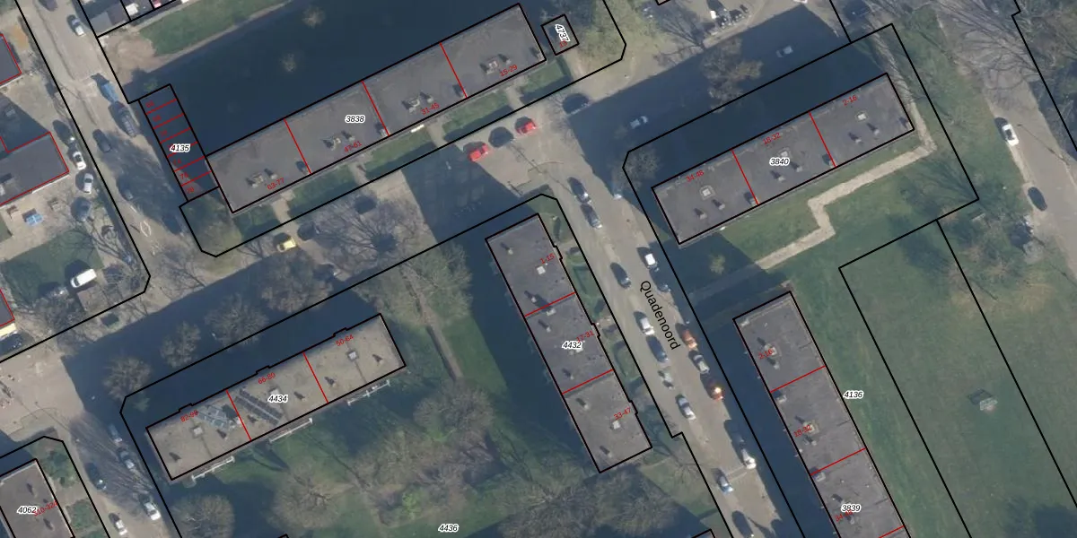 Het perceel waarop Quadenoord 7 staat heeft een oppervlakte van 513 m². Dit is een groot perceel. De perceeloppervlakte wordt geregistreerd door het Kadaster. Gedetailleerde informatie over de maten van dit perceel kunt u vinden in het rapport Kadastrale kaart met maatvoering van Quadenoord 7.