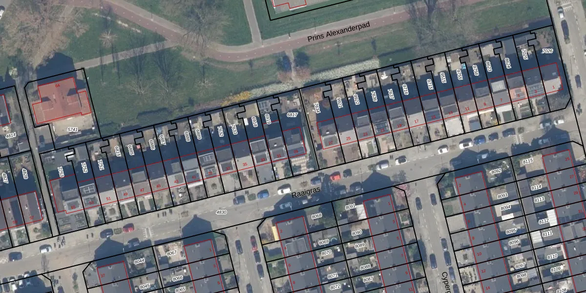 Het perceel waarop Raaigras 29 staat heeft een oppervlakte van 262 m². Dit is een middelgroot perceel. De perceeloppervlakte wordt geregistreerd door het Kadaster. Gedetailleerde informatie over de maten van dit perceel kunt u vinden in het rapport Kadastrale kaart met maatvoering van Raaigras 29.