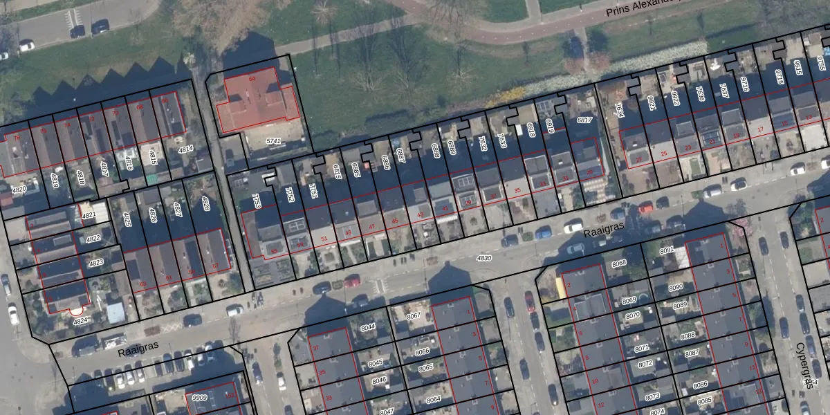Raaigras 43 is gelegen op kadastraal perceel HLG03B6887. Deze kadastrale aanduiding is uniek en wordt gebruikt door het Kadaster om eigendomsrechten en andere zakelijke rechten vast te leggen. Het perceel maakt onderdeel uit van de kadastrale gemeente Hillegersberg.