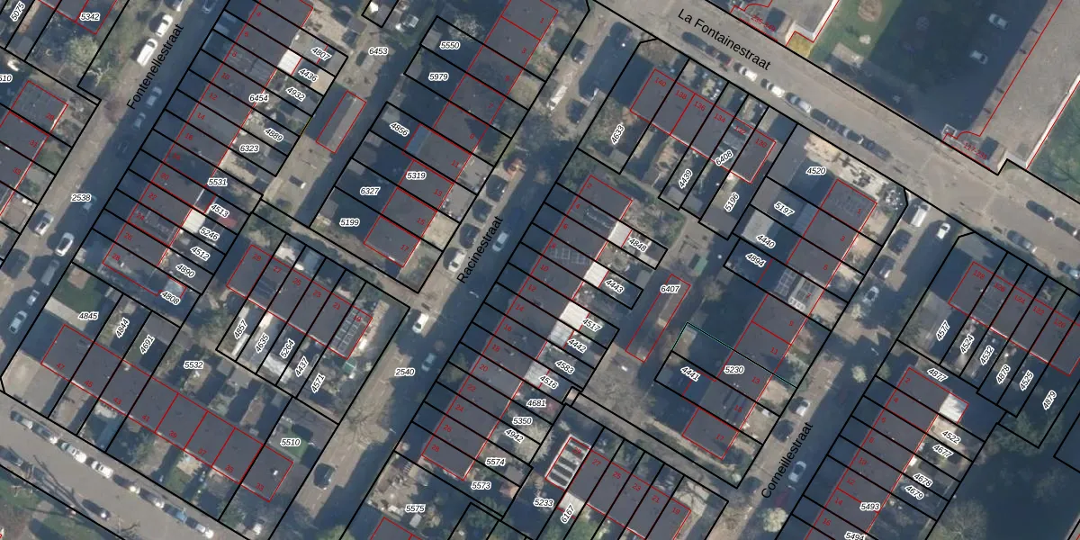 Het perceel waarop Racinestraat 10 staat heeft een oppervlakte van 1526 m². Dit is een zeer groot perceel. De perceeloppervlakte wordt geregistreerd door het Kadaster. Gedetailleerde informatie over de maten van dit perceel kunt u vinden in het rapport Kadastrale kaart met maatvoering van Racinestraat 10.