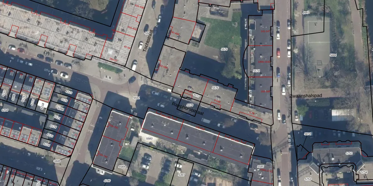 Raephorststraat 19-B is gelegen op kadastraal perceel RTD07W5577. Deze kadastrale aanduiding is uniek en wordt gebruikt door het Kadaster om eigendomsrechten en andere zakelijke rechten vast te leggen. Het perceel maakt onderdeel uit van de kadastrale gemeente Rotterdam.