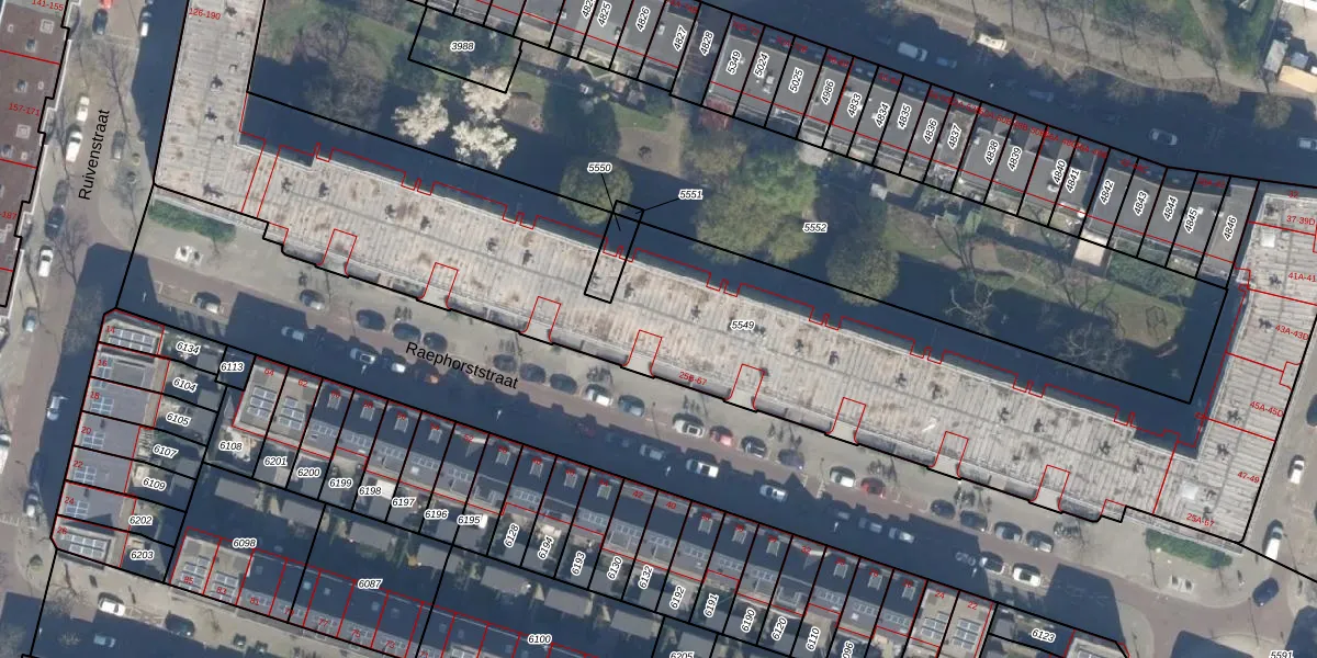 Raephorststraat 53-D is gelegen op kadastraal perceel RTD07W5549. Deze kadastrale aanduiding is uniek en wordt gebruikt door het Kadaster om eigendomsrechten en andere zakelijke rechten vast te leggen. Het perceel maakt onderdeel uit van de kadastrale gemeente Rotterdam.