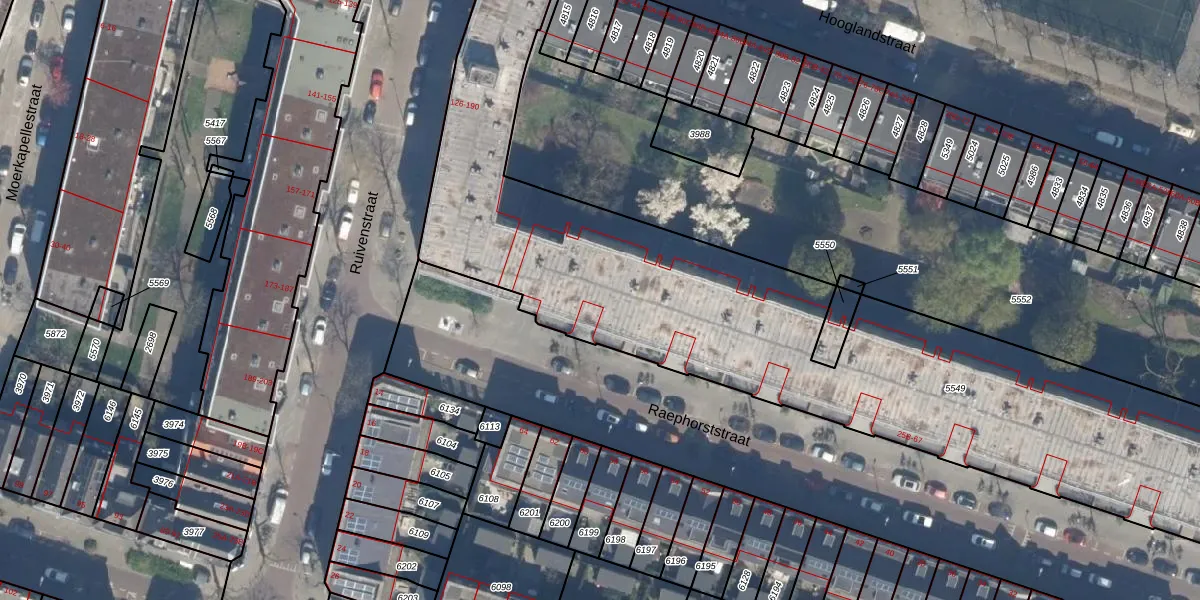 Raephorststraat 63-B is gelegen op kadastraal perceel RTD07W5549. Deze kadastrale aanduiding is uniek en wordt gebruikt door het Kadaster om eigendomsrechten en andere zakelijke rechten vast te leggen. Het perceel maakt onderdeel uit van de kadastrale gemeente Rotterdam.