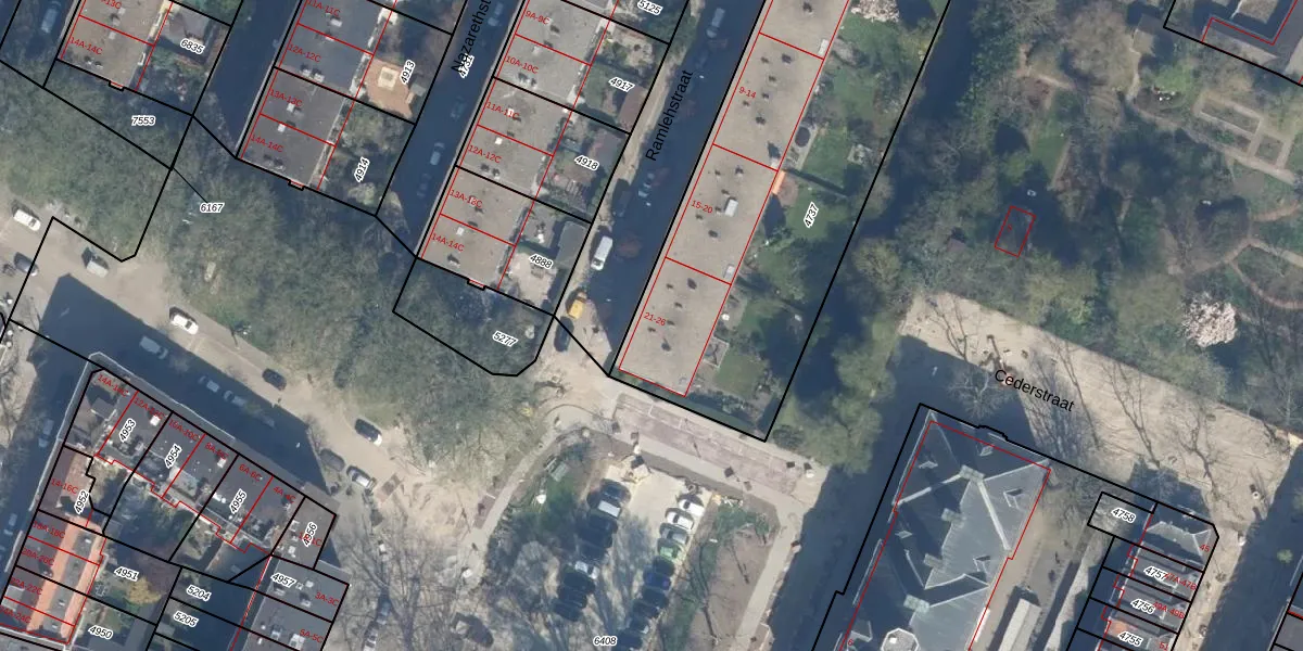 Ramlehstraat 26 is gelegen op kadastraal perceel KLG00G4737. Deze kadastrale aanduiding is uniek en wordt gebruikt door het Kadaster om eigendomsrechten en andere zakelijke rechten vast te leggen. Het perceel maakt onderdeel uit van de kadastrale gemeente Kralingen.
