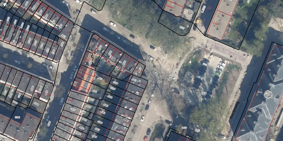 Ramlehweg 1-A is gelegen op kadastraal perceel KLG00G4956. Deze kadastrale aanduiding is uniek en wordt gebruikt door het Kadaster om eigendomsrechten en andere zakelijke rechten vast te leggen. Het perceel maakt onderdeel uit van de kadastrale gemeente Kralingen.