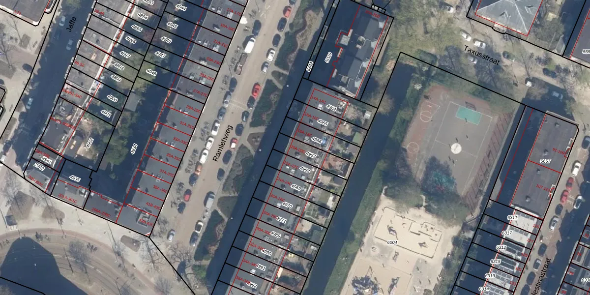 Het perceel waarop Ramlehweg 20-A staat heeft een oppervlakte van 165 m². Dit is een middelgroot perceel. De perceeloppervlakte wordt geregistreerd door het Kadaster. Gedetailleerde informatie over de maten van dit perceel kunt u vinden in het rapport Kadastrale kaart met maatvoering van Ramlehweg 20-A.
