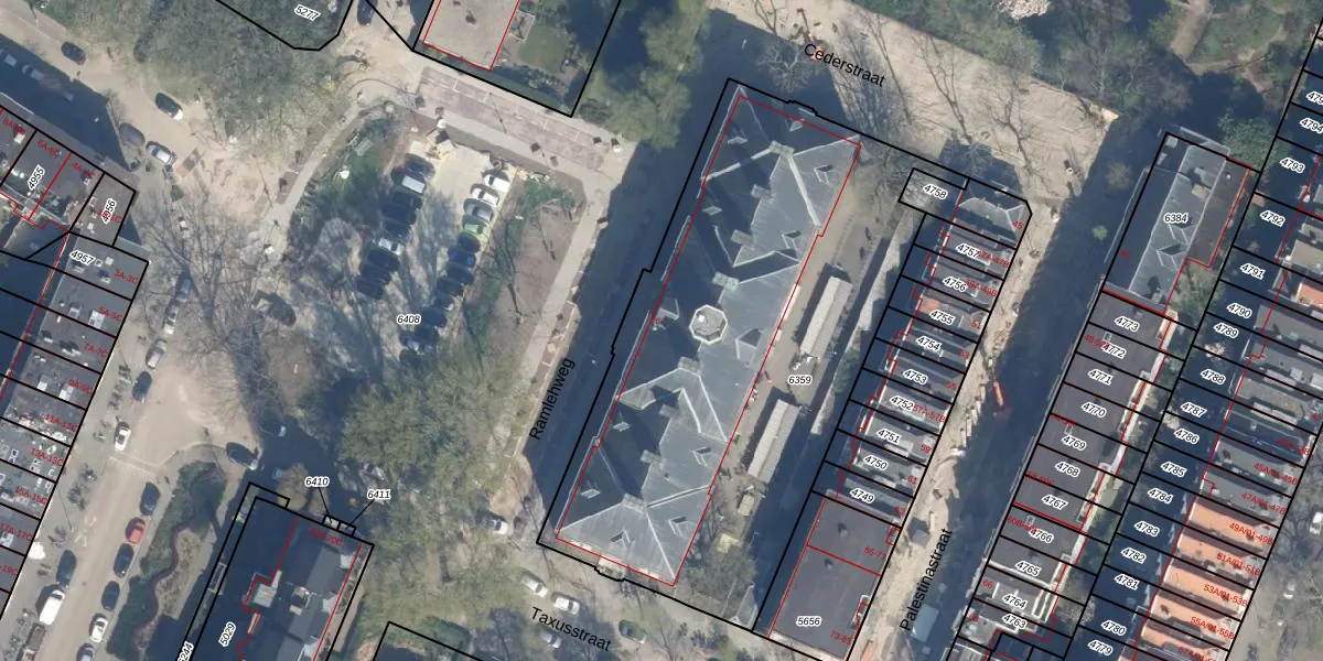 Het perceel waarop Ramlehweg 6 staat heeft een oppervlakte van 2675 m². Dit is een zeer groot perceel. De perceeloppervlakte wordt geregistreerd door het Kadaster. Gedetailleerde informatie over de maten van dit perceel kunt u vinden in het rapport Kadastrale kaart met maatvoering van Ramlehweg 6.