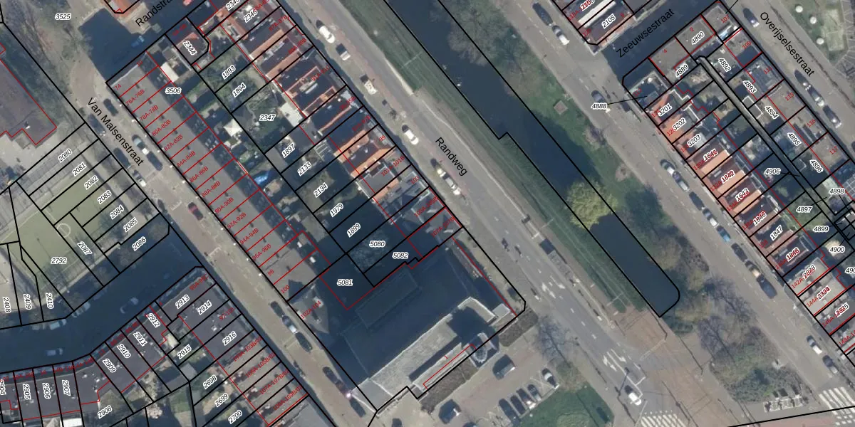 Randweg 105-A is gelegen op kadastraal perceel CLS00F5080. Deze kadastrale aanduiding is uniek en wordt gebruikt door het Kadaster om eigendomsrechten en andere zakelijke rechten vast te leggen. Het perceel maakt onderdeel uit van de kadastrale gemeente Charlois.