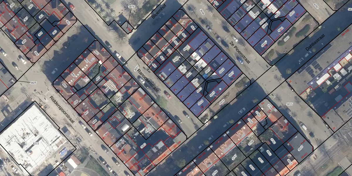 Ranonkelstraat 34 is gelegen op kadastraal perceel CLS00G5911. Deze kadastrale aanduiding is uniek en wordt gebruikt door het Kadaster om eigendomsrechten en andere zakelijke rechten vast te leggen. Het perceel maakt onderdeel uit van de kadastrale gemeente Charlois.