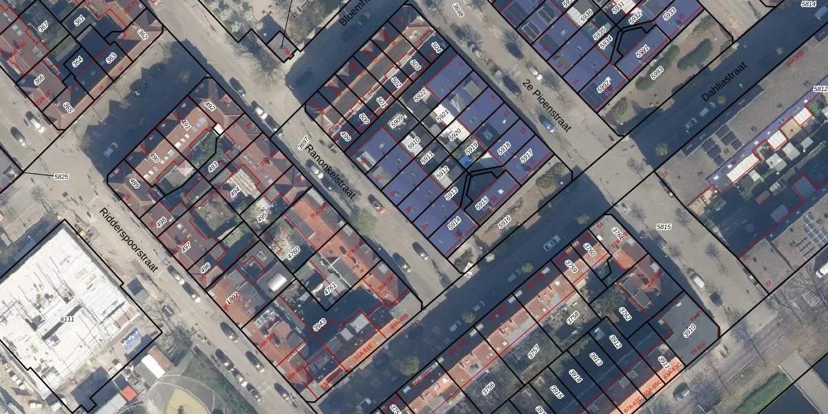 Ranonkelstraat 36 is gelegen op kadastraal perceel CLS00G5912. Deze kadastrale aanduiding is uniek en wordt gebruikt door het Kadaster om eigendomsrechten en andere zakelijke rechten vast te leggen. Het perceel maakt onderdeel uit van de kadastrale gemeente Charlois.