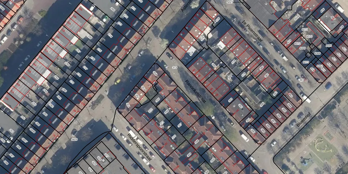 Ranonkelstraat 5-B is gelegen op kadastraal perceel CLS00G355. Deze kadastrale aanduiding is uniek en wordt gebruikt door het Kadaster om eigendomsrechten en andere zakelijke rechten vast te leggen. Het perceel maakt onderdeel uit van de kadastrale gemeente Charlois.
