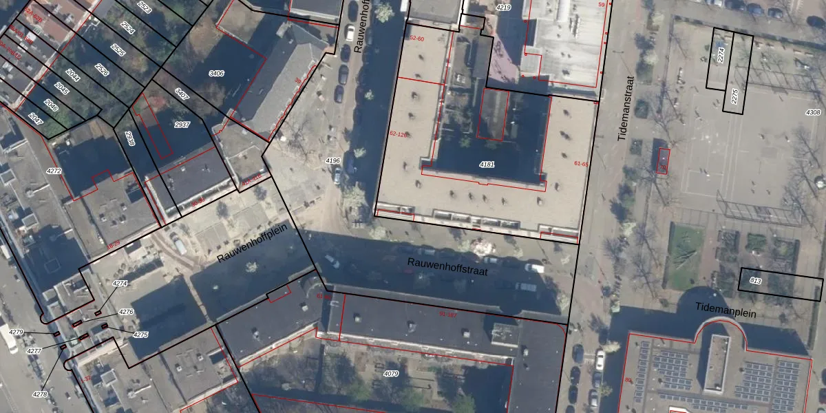 Het perceel waarop Rauwenhoffstraat 72 staat heeft een oppervlakte van 2016 m². Dit is een zeer groot perceel. De perceeloppervlakte wordt geregistreerd door het Kadaster. Gedetailleerde informatie over de maten van dit perceel kunt u vinden in het rapport Kadastrale kaart met maatvoering van Rauwenhoffstraat 72.
