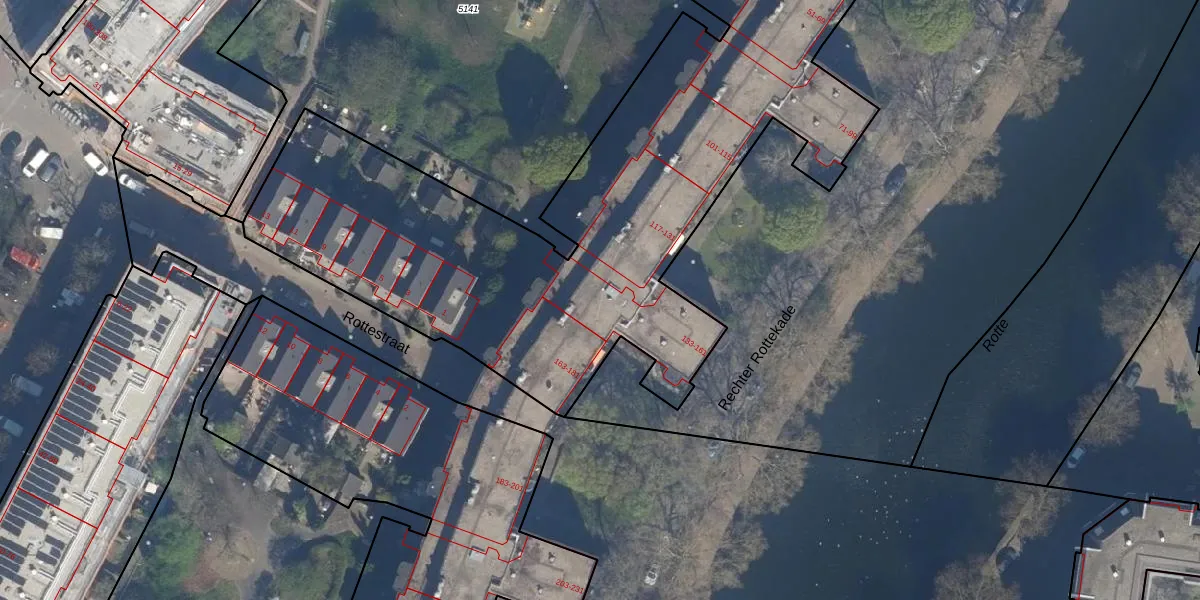 Het perceel waarop Rechter Rottekade 133 staat heeft een oppervlakte van 6317 m². Dit is een zeer groot perceel. De perceeloppervlakte wordt geregistreerd door het Kadaster. Gedetailleerde informatie over de maten van dit perceel kunt u vinden in het rapport Kadastrale kaart met maatvoering van Rechter Rottekade 133.