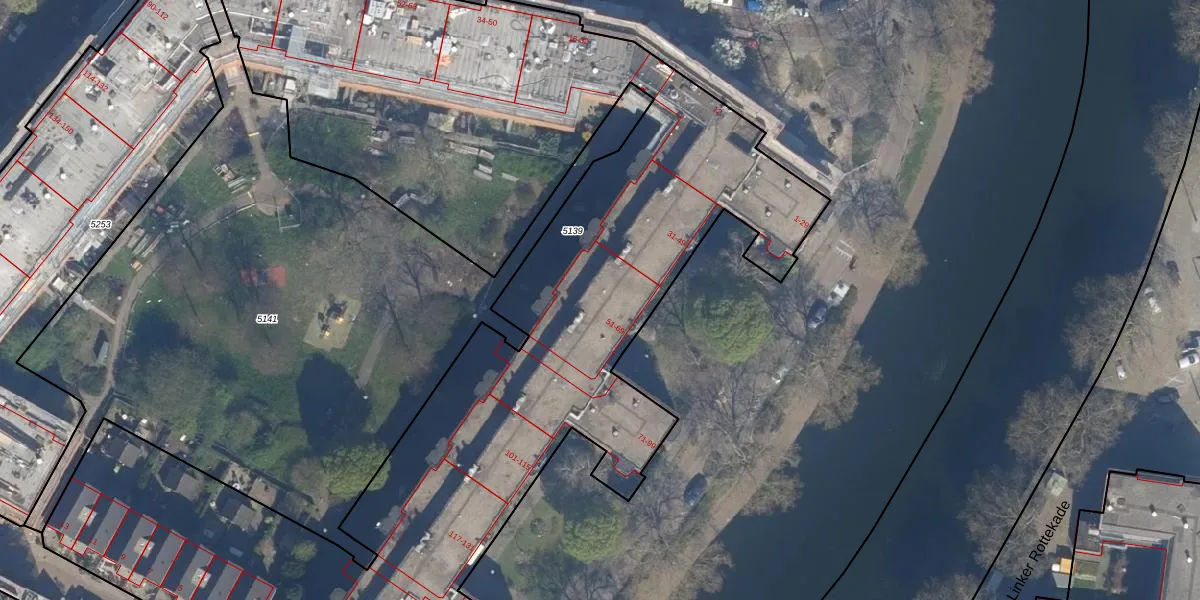 Rechter Rottekade 53 is gelegen op kadastraal perceel RTD08X5139. Deze kadastrale aanduiding is uniek en wordt gebruikt door het Kadaster om eigendomsrechten en andere zakelijke rechten vast te leggen. Het perceel maakt onderdeel uit van de kadastrale gemeente Rotterdam.