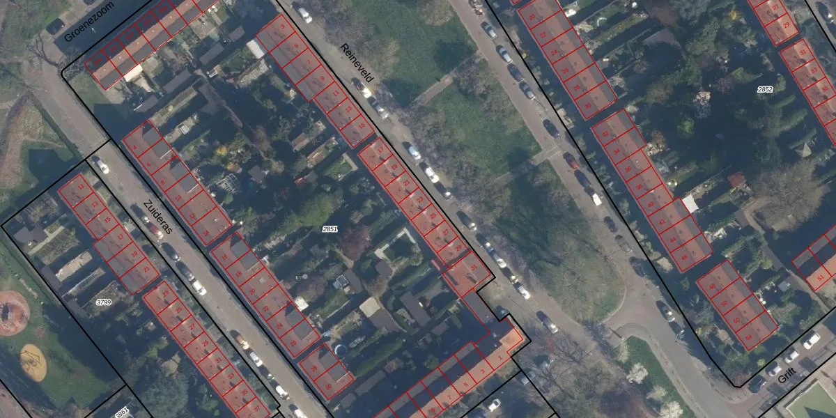Het perceel waarop Reineveld 23 staat heeft een oppervlakte van 6236 m². Dit is een zeer groot perceel. De perceeloppervlakte wordt geregistreerd door het Kadaster. Gedetailleerde informatie over de maten van dit perceel kunt u vinden in het rapport Kadastrale kaart met maatvoering van Reineveld 23.