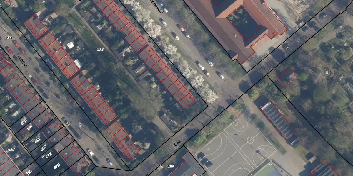 Het perceel waarop Reineveld 65 staat heeft een oppervlakte van 6391 m². Dit is een zeer groot perceel. De perceeloppervlakte wordt geregistreerd door het Kadaster. Gedetailleerde informatie over de maten van dit perceel kunt u vinden in het rapport Kadastrale kaart met maatvoering van Reineveld 65.