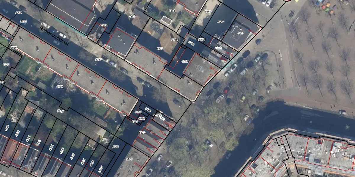 Rembrandtstraat 1-C is gelegen op kadastraal perceel RTD08X5411. Deze kadastrale aanduiding is uniek en wordt gebruikt door het Kadaster om eigendomsrechten en andere zakelijke rechten vast te leggen. Het perceel maakt onderdeel uit van de kadastrale gemeente Rotterdam.