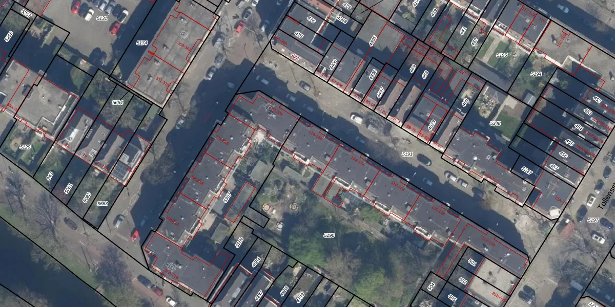 Het adres ligt op het perceel RTD08-X-5190, dat zich in de kadastrale gemeente Rotterdam bevindt. De oppervlakte van het perceel is 2760 m². Dat is groter dan gemiddeld in Rotterdam, waar de gemiddelde perceeloppervlakte op 689,2 m² ligt. Het kleinste perceel in de kadastrale gemeente is 0 m² groot. De grootste perceeloppervlakte is 4,0 ha. Op het perceel liggen in totaal 34 adressen. De huidige grenzen van het perceel zijn digitaal in de Basisregistratie Kadaster (BRK) geregistreerd op 08-01-2003.
