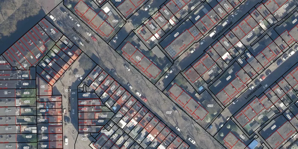 Resedastraat 30-A is gelegen op kadastraal perceel CLS00G5190. Deze kadastrale aanduiding is uniek en wordt gebruikt door het Kadaster om eigendomsrechten en andere zakelijke rechten vast te leggen. Het perceel maakt onderdeel uit van de kadastrale gemeente Charlois.