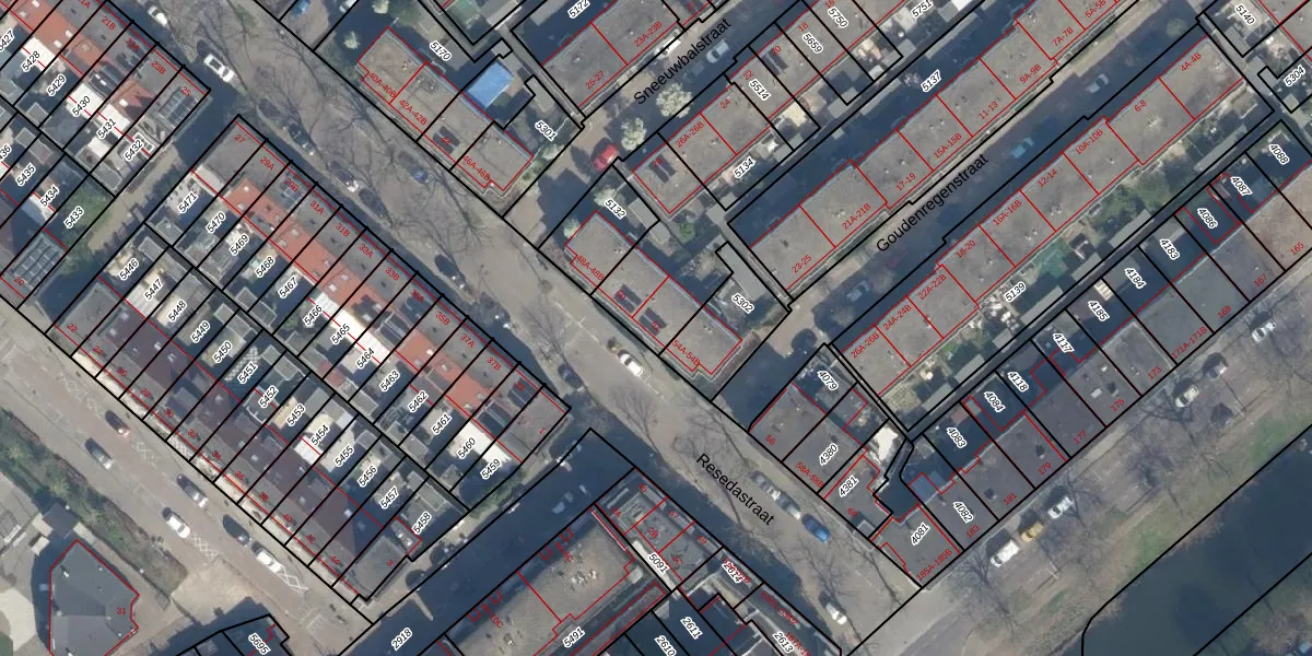 Resedastraat 52 is gelegen op kadastraal perceel CLS00G5751. Deze kadastrale aanduiding is uniek en wordt gebruikt door het Kadaster om eigendomsrechten en andere zakelijke rechten vast te leggen. Het perceel maakt onderdeel uit van de kadastrale gemeente Charlois.