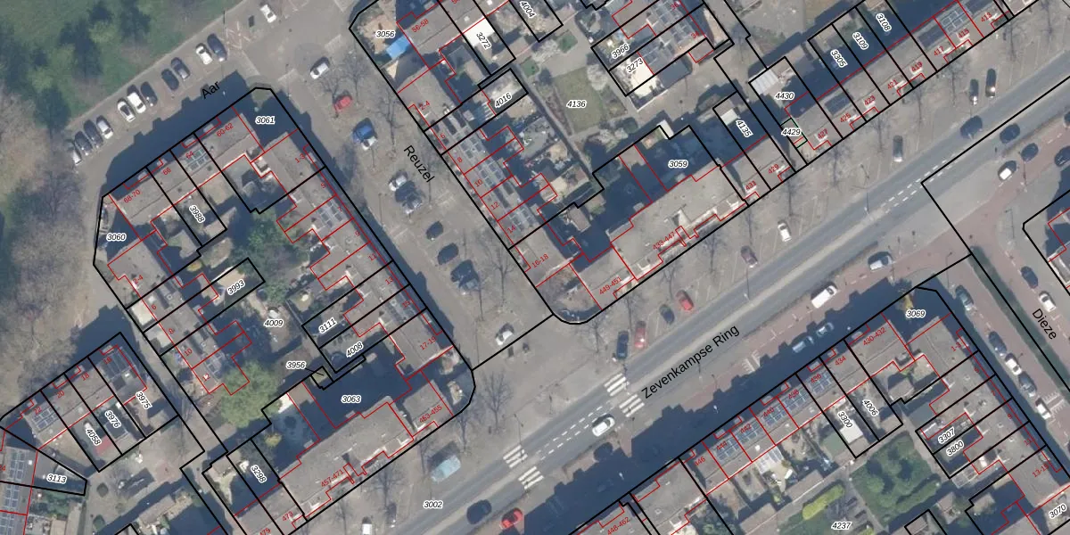 Het perceel waarop Reuzel 16 staat heeft een oppervlakte van 825 m². Dit is een groot perceel. De perceeloppervlakte wordt geregistreerd door het Kadaster. Gedetailleerde informatie over de maten van dit perceel kunt u vinden in het rapport Kadastrale kaart met maatvoering van Reuzel 16.