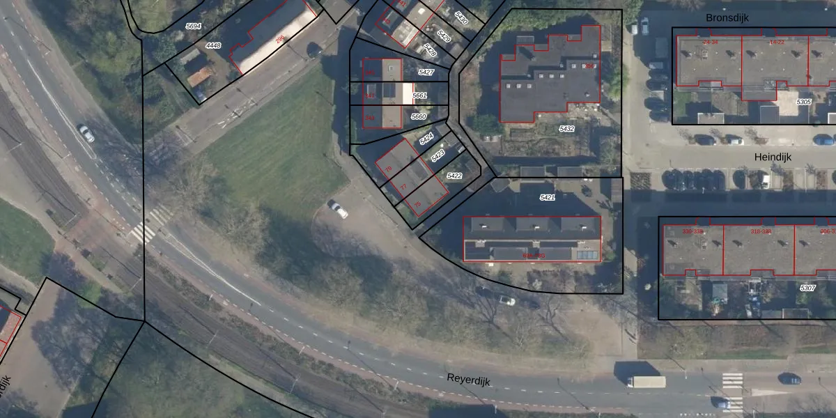 Gebruik de zoekbalk of klik op een perceel voor informatie over de adressen binnen dit perceel.