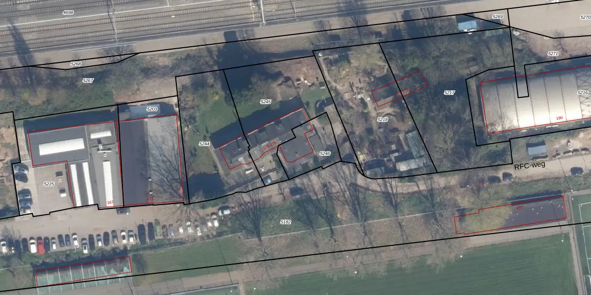 RFC-weg 175 is gelegen op kadastraal perceel RTD10Z5246. Deze kadastrale aanduiding is uniek en wordt gebruikt door het Kadaster om eigendomsrechten en andere zakelijke rechten vast te leggen. Het perceel maakt onderdeel uit van de kadastrale gemeente Rotterdam.