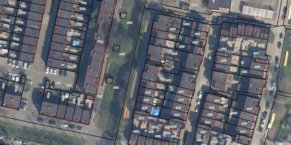 Het perceel waarop Rhijnauwensingel 188 staat heeft een oppervlakte van 367 m². Dit is een groot perceel. De perceeloppervlakte wordt geregistreerd door het Kadaster. Gedetailleerde informatie over de maten van dit perceel kunt u vinden in het rapport Kadastrale kaart met maatvoering van Rhijnauwensingel 188.