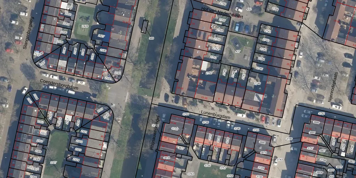 Het perceel waarop Rhijnauwensingel 32 staat heeft een oppervlakte van 515 m². Dit is een groot perceel. De perceeloppervlakte wordt geregistreerd door het Kadaster. Gedetailleerde informatie over de maten van dit perceel kunt u vinden in het rapport Kadastrale kaart met maatvoering van Rhijnauwensingel 32.
