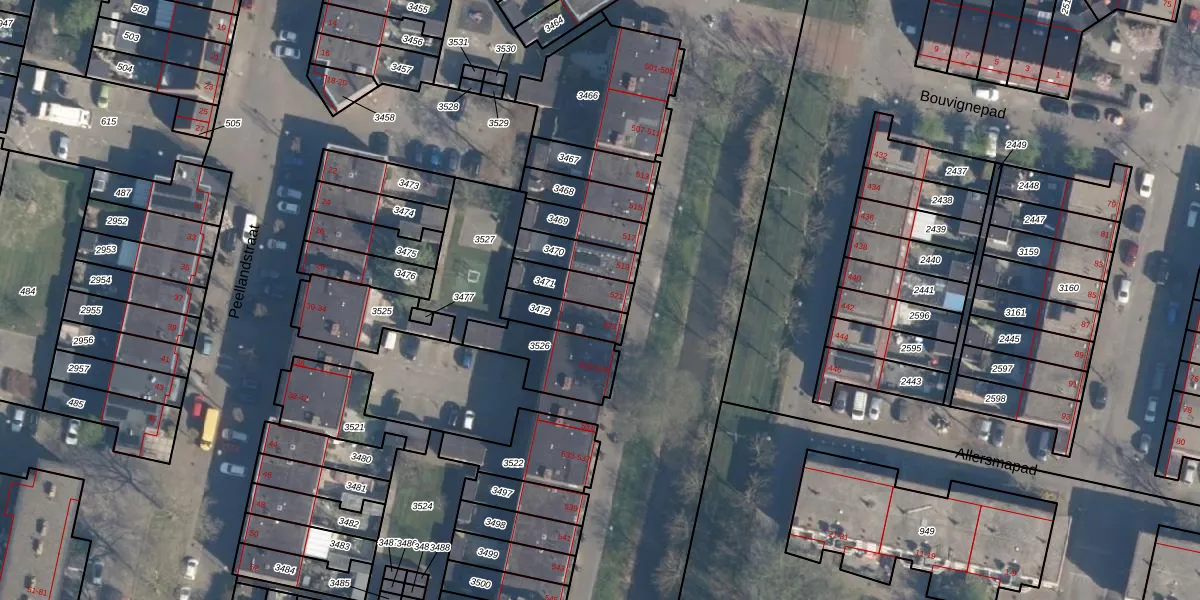 Gebruik de zoekbalk of klik op een perceel voor informatie over de adressen binnen dit perceel.