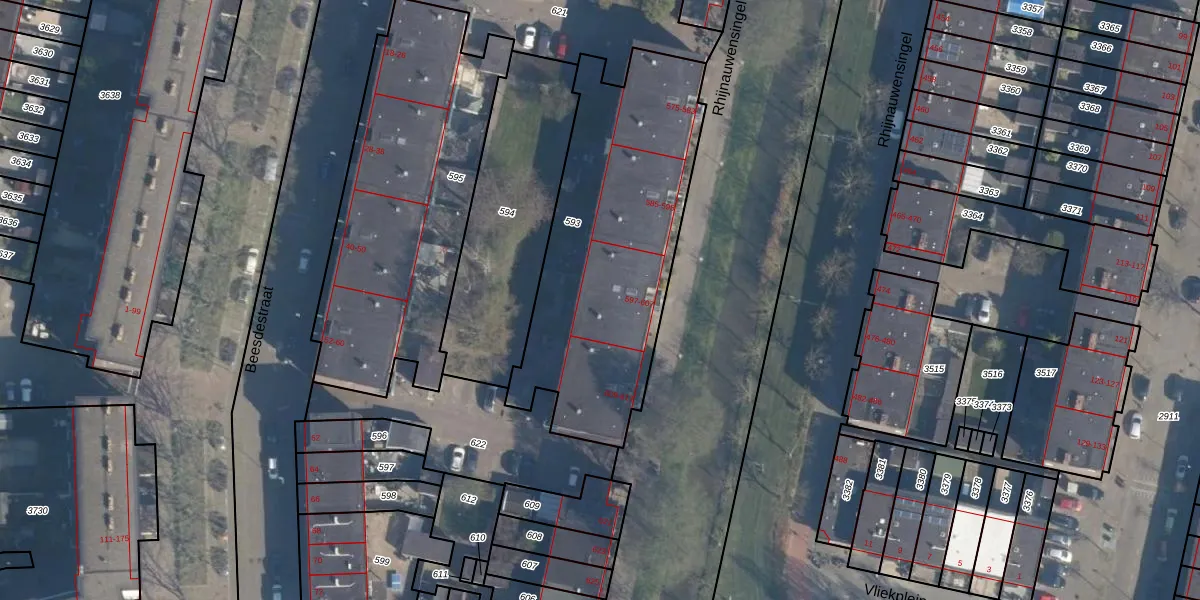 Rhijnauwensingel 599 is gelegen op kadastraal perceel ISM01F593. Deze kadastrale aanduiding is uniek en wordt gebruikt door het Kadaster om eigendomsrechten en andere zakelijke rechten vast te leggen. Het perceel maakt onderdeel uit van de kadastrale gemeente IJsselmonde.