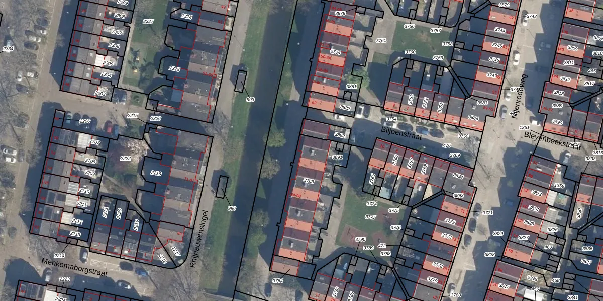 Het perceel waarop Rhijnauwensingel 68 staat heeft een oppervlakte van 632 m². Dit is een groot perceel. De perceeloppervlakte wordt geregistreerd door het Kadaster. Gedetailleerde informatie over de maten van dit perceel kunt u vinden in het rapport Kadastrale kaart met maatvoering van Rhijnauwensingel 68.